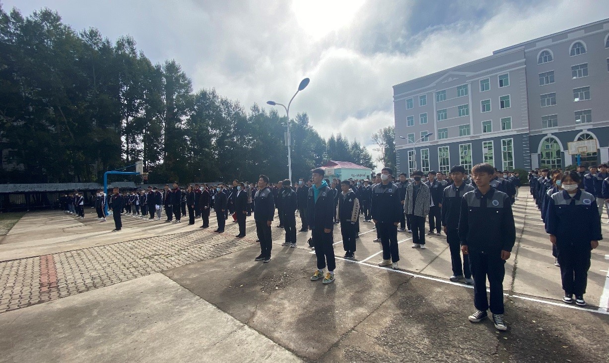 在全院師生員工注目禮下,伴隨著(zhù)激昂雄壯的《義勇軍進(jìn)行曲》,鮮艷的五星紅旗冉冉升起,迎風(fēng)飄揚。全院師生員工對祖國無(wú)限熱愛(ài)之情和對新學(xué)期的無(wú)限憧憬油然而生。