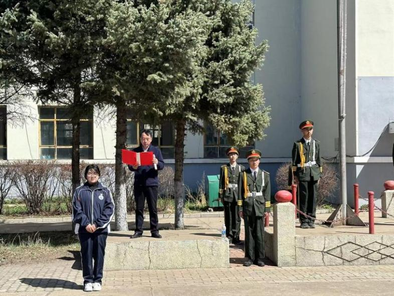 國旗護衛隊昂首挺胸,邁著(zhù)鏗鏘有力的步伐護送國旗至升旗臺,在《義勇軍進(jìn)行曲》振奮激昂的音樂(lè )聲中,五星紅旗迎著(zhù)朝陽(yáng)冉冉升起,迎風(fēng)飄揚。全體師生懷著(zhù)崇高的敬意和自豪的心情向五星紅旗行注目禮,祝福祖國繁榮昌盛。