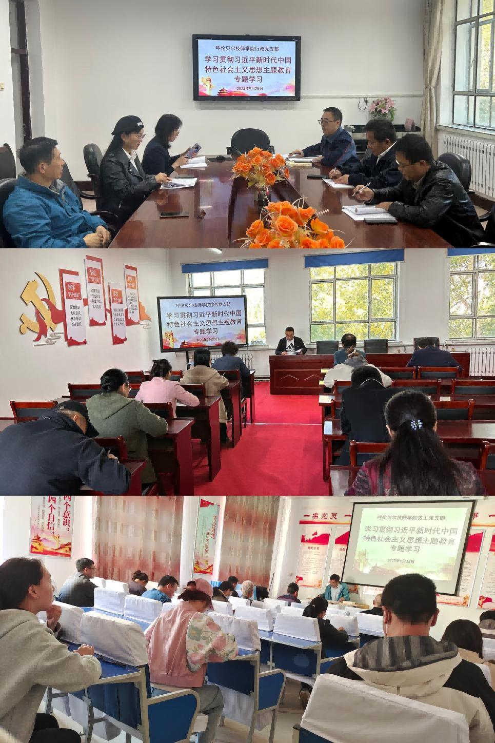 主題教育讀書(shū)班和專(zhuān)題學(xué)習研討主要采取集中自學(xué)、專(zhuān)題輔導、研究交流、觀(guān)看視頻、個(gè)人自學(xué)等方式,牢牢把握深入學(xué)習貫徹習近平新時(shí)代中國特色社會(huì )主義思想這一主題主線(xiàn)和根本任務(wù),深入學(xué)習習近平總書(shū)記著(zhù)作、重要論述、重要講話(huà)和重要指示批示精神,以及黨的二十大精神等,扎扎實(shí)實(shí)讀原著(zhù)、學(xué)原文、悟原理,緊扣職能職責,用黨的創(chuàng )新理論指導實(shí)踐、推動(dòng)學(xué)院各項工作高質(zhì)量發(fā)展。各支部也分別開(kāi)展專(zhuān)題學(xué)習研討。