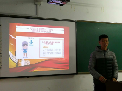 《中華人民共和國民法總則》已于2017年3月15日經(jīng)第十二屆全國人民代表大會(huì )第五次會(huì )議審議通過(guò),將于2017年10月1日起施行。這是我國全面推進(jìn)依法治國進(jìn)程中的一件大事。2017年4月9日中央宣傳部、司法部、全國普法辦聯(lián)合印發(fā)《關(guān)于加強民法總則學(xué)習宣傳的通知》,對《民法總則》的學(xué)習宣傳提出了明確要求。我校師生就把弘揚社會(huì )主義核心價(jià)值觀(guān)融入民法總則宣傳全過(guò)程,《民法總則》確立的平等、自愿、公平、誠信、守法和綠色原則的理解,《民法總則》對民事主體和民事責任、訴訟時(shí)效的新規定,特別是如何將《民法總則》的學(xué)習、宣傳與思想政治理論課各門(mén)課程相結合、讓民法知識深入課堂民法精神深入人心等問(wèn)題進(jìn)行了熱烈研討。