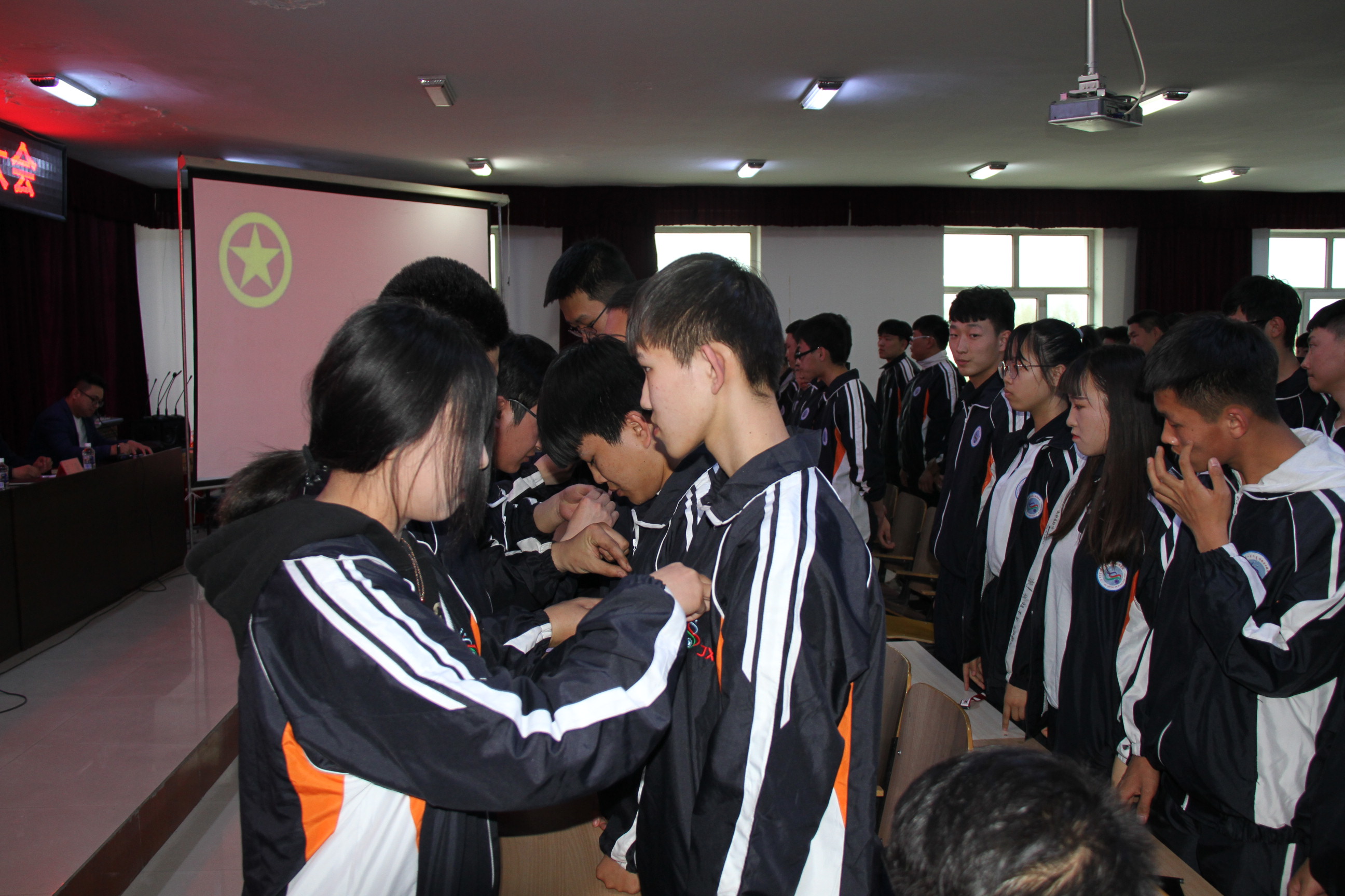 老團員代表為新團員佩戴團徽