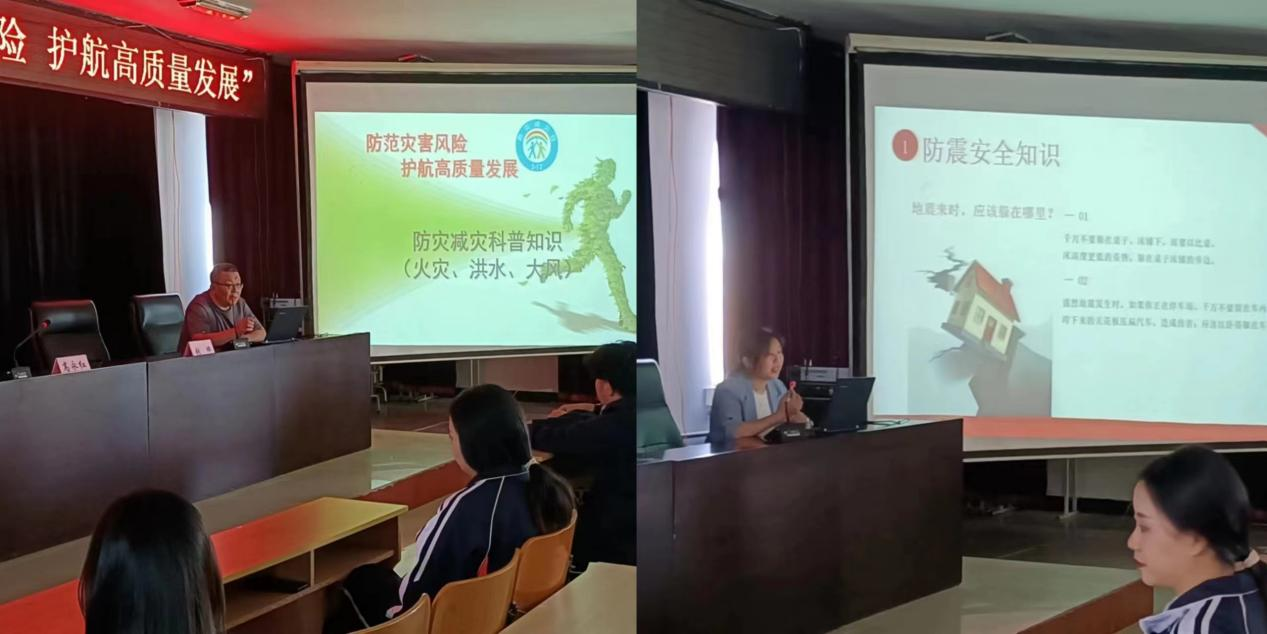 上午10時(shí),我院副院長(cháng)高永紅和牙克石市應急管理局副局長(cháng)張帥首先講解了此次活動(dòng)的目的及意義。然后由呼倫貝爾安全生產(chǎn)庫專(zhuān)家、呼倫貝爾職業(yè)技術(shù)學(xué)院高級講師孫成老師、王瑋老師進(jìn)行防災減災救災知識講座。