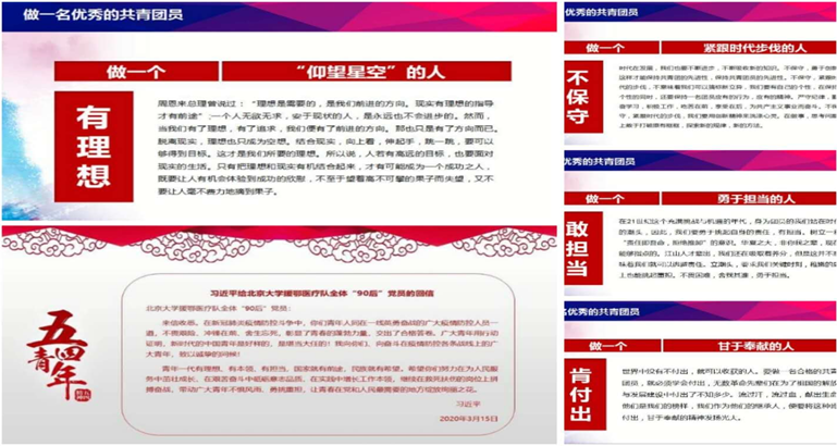 團課最后,全院團員同學(xué)認真學(xué)習了習近平總書(shū)記給北京大學(xué)援鄂醫療隊全體“90后”黨員的回信精神。