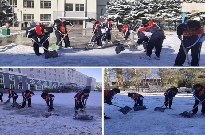 同學(xué)們克服困難,認真清理校園主干道積雪,用自己的滿(mǎn)腔熱情履行著(zhù)志愿者的責任和義務(wù)。他們是呼倫貝爾技師學(xué)院的一面旗幟,是學(xué)生的先進(jìn)代表,更是當代青年踐行責任意識、服務(wù)意識和奉獻精神的典型寫(xiě)照。