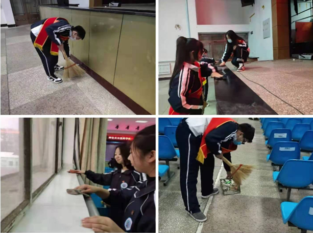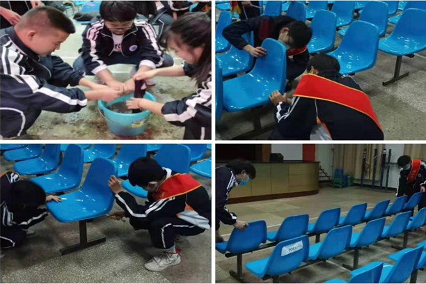 活動(dòng)過(guò)程中,同學(xué)們不怕臟、不怕累分工合作,對禮堂的窗臺進(jìn)行了清潔,對禮堂的所有角落進(jìn)行了打掃,對禮堂所有的凳子進(jìn)行了清潔擺放與維修。