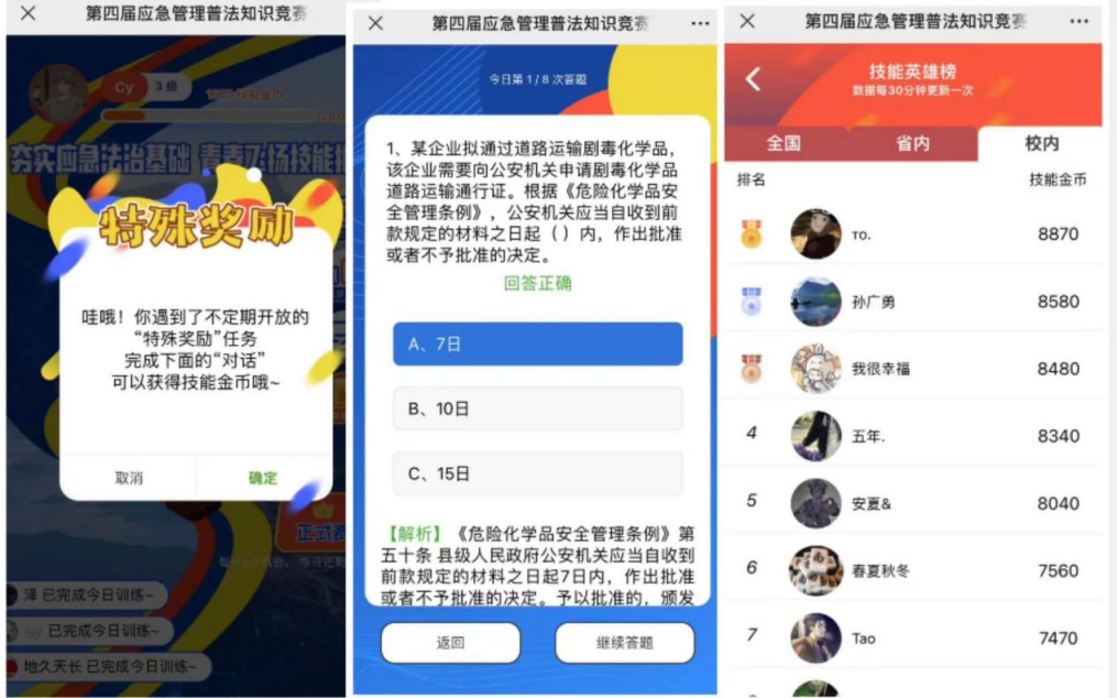 在參加競賽活動(dòng)的過(guò)程中,學(xué)生們對于應急管理工作和相關(guān)法律法規有了更深的認識,大家爭先學(xué)習、積極答題,在收獲了應急普法知識的同時(shí)也提升了自我安全意識和應急能力。