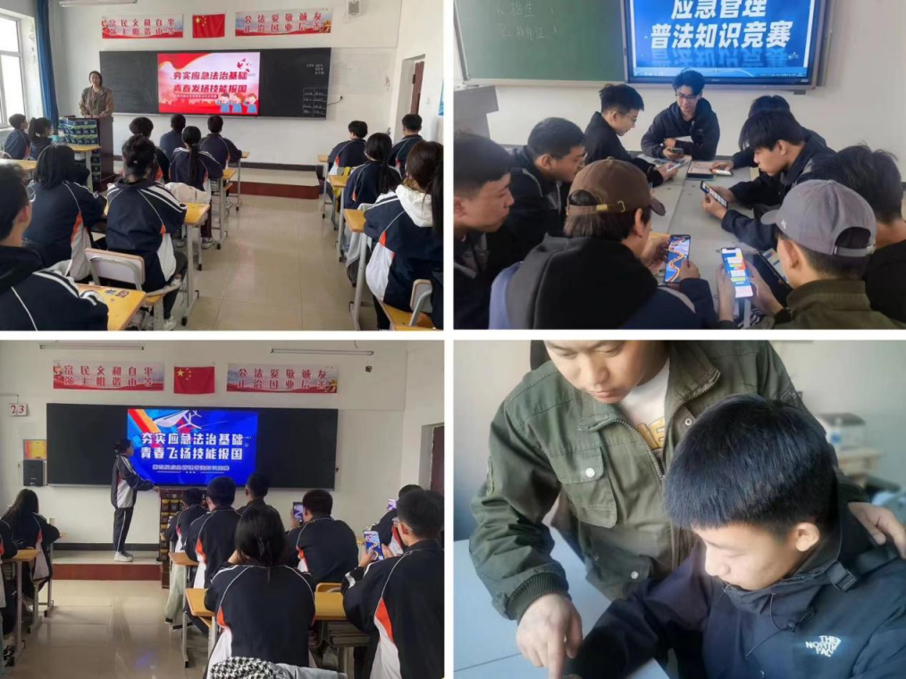 2023年4月24日,各班級結合總體安排,開(kāi)展了“應急管理知識競賽”主題班會(huì )。班主任講解應急管理普法知識,解讀相關(guān)政策,并分享參與應急管理知識普法競賽的得分技巧。