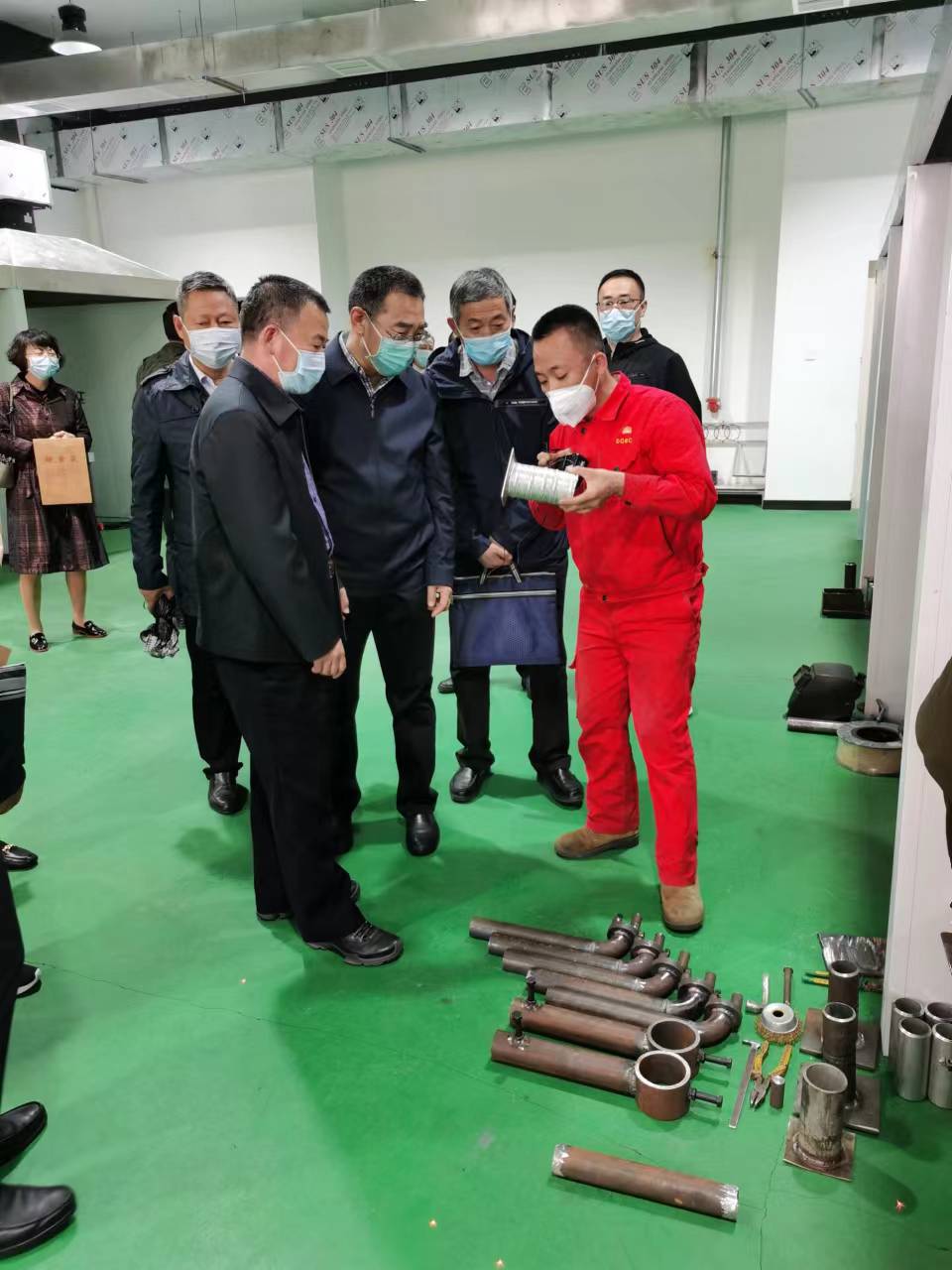 焊接專(zhuān)業(yè)學(xué)生所制作的?;?、校訓以及技能大賽作品獲得了調研組領(lǐng)導的一致好評
