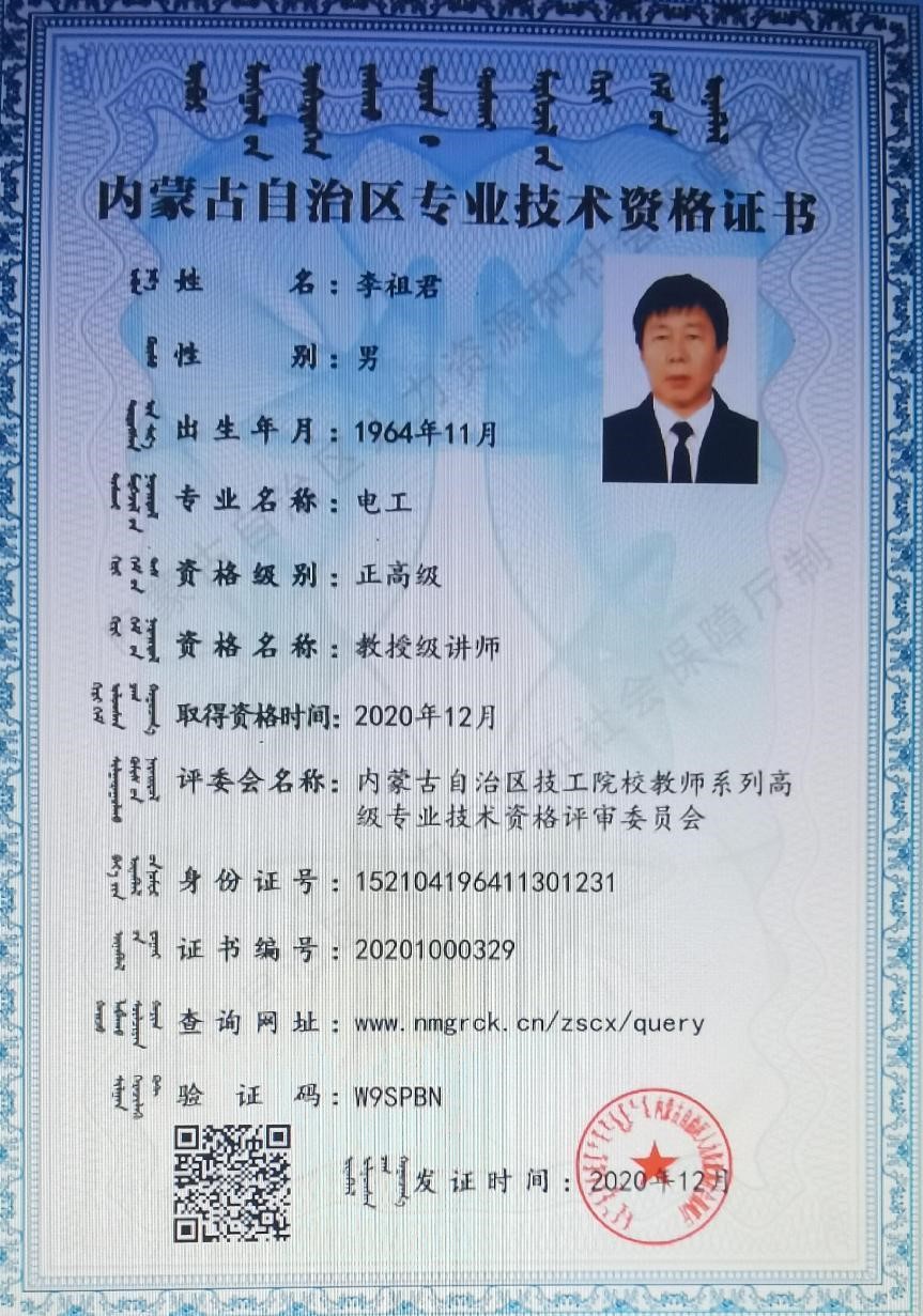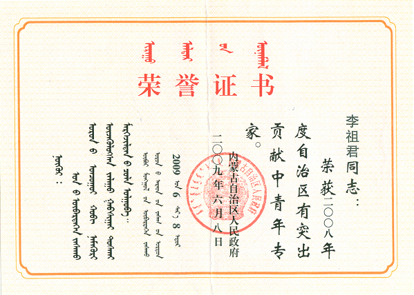 2008年獲內蒙古自治區有突出貢獻的中青年專(zhuān)家(高技能雙師型人才)榮譽(yù)稱(chēng)號