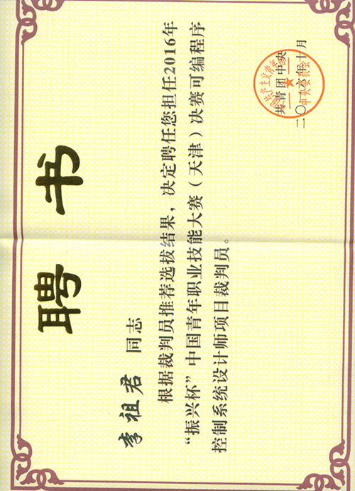 2016年“振興杯”中國青年職業(yè)技能大賽(天津)決賽可編程序控制系統設計師項目裁判員