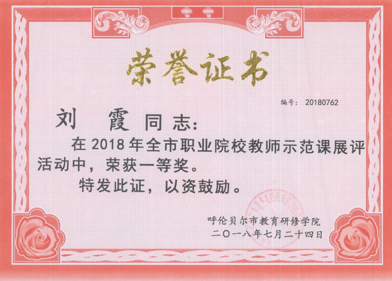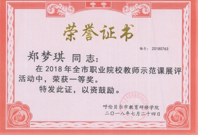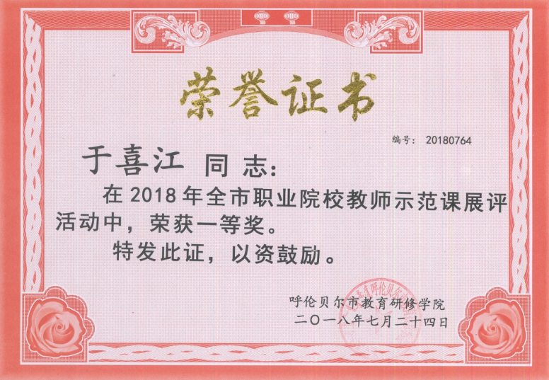 為進(jìn)一步調動(dòng)全市職業(yè)院校教師積極性,發(fā)揮優(yōu)秀教師在教學(xué)中示范引領(lǐng)作用,充分發(fā)揮名師、學(xué)科帶頭人、骨干教師示范引領(lǐng)作用,促進(jìn)地區間教師學(xué)習與交流,提高教師教育教學(xué)水平,推進(jìn)課堂教學(xué)改革,促進(jìn)教師間學(xué)習與交流,呼倫貝爾市教育研修學(xué)院主辦了全市職業(yè)院校教師示范課展評活動(dòng)。我院推薦于喜江、劉霞、鄭夢(mèng)祺等三位老師參加了此次展評活動(dòng),于6月11日在海拉爾第一職業(yè)學(xué)校參加評課活動(dòng),于喜江、劉霞、鄭夢(mèng)祺等三位老師分別展示了一體化教學(xué)、小組討論等模式的教學(xué)示范課,受到評委的認可,均榮獲一等獎。