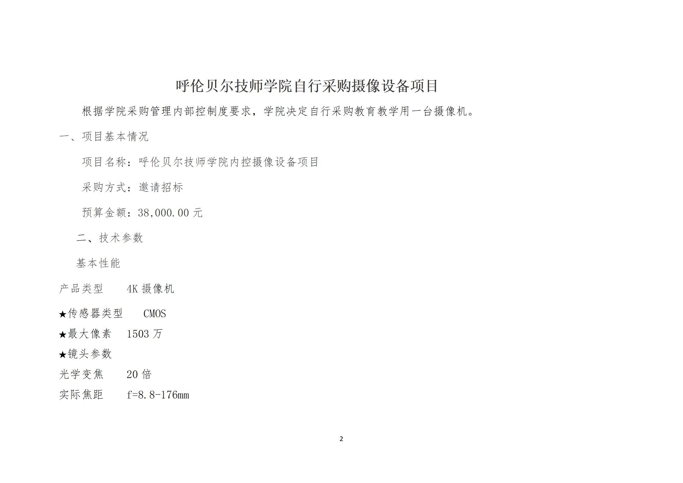 呼倫貝爾技師學(xué)院教育教學(xué)用攝像機自行采購項目采購文件