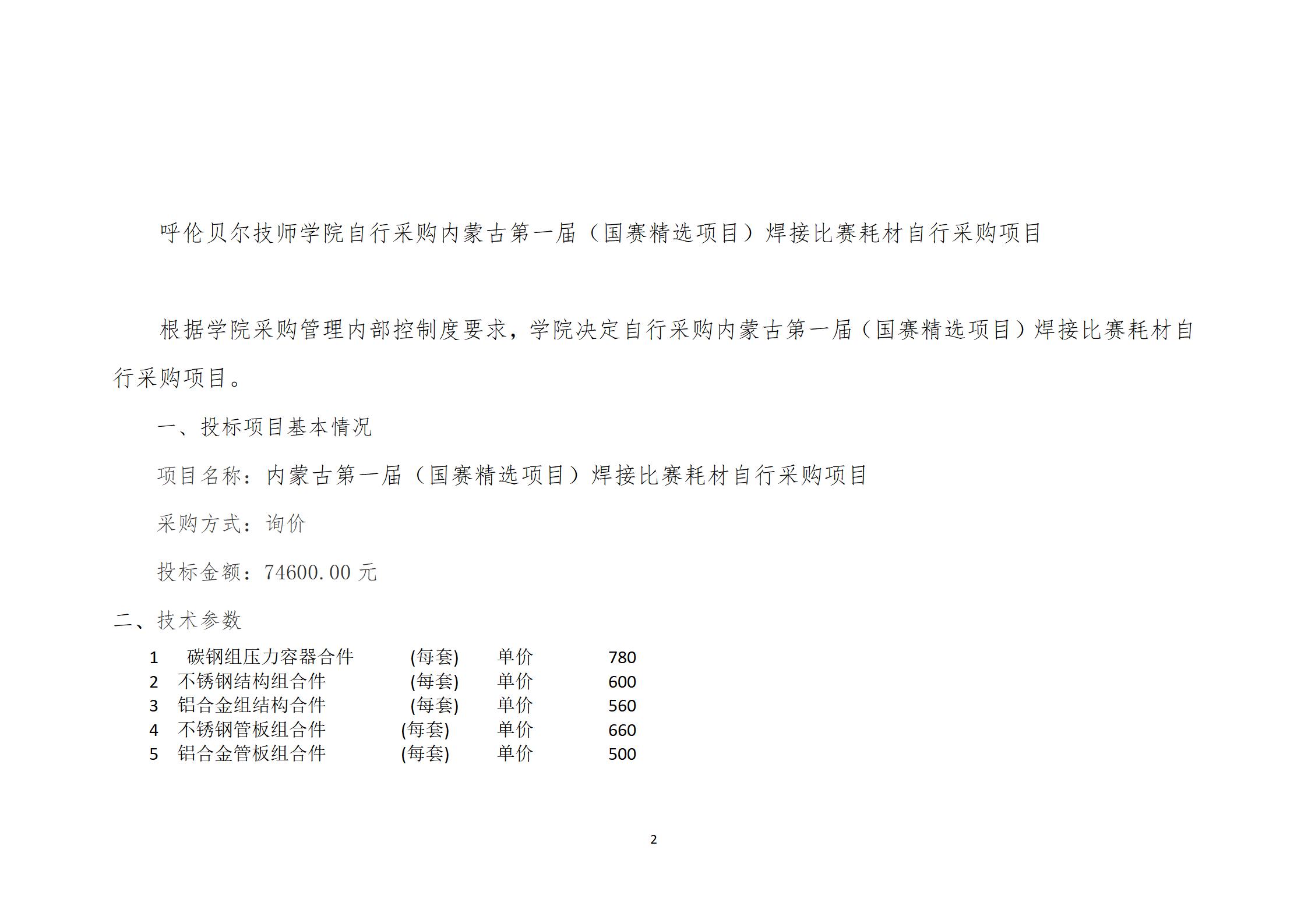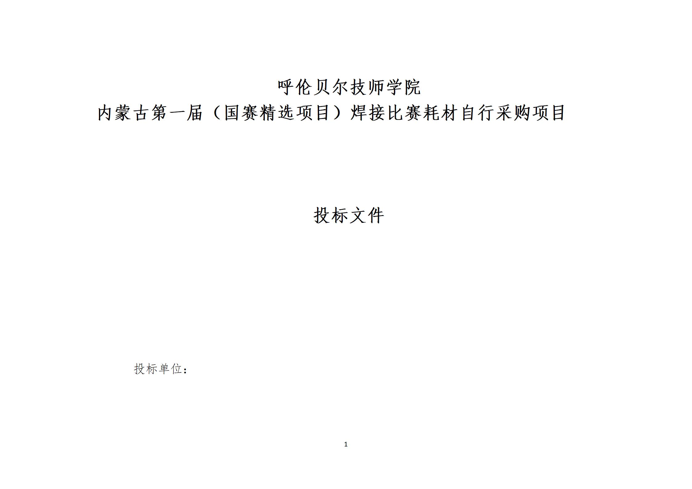 呼倫貝爾技師學(xué)院內蒙古第一屆(國賽精選項目)焊接比賽耗材自行采購項目投標文件