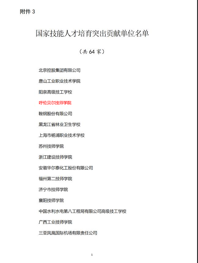 6月22日,在人社部召開(kāi)的第十五屆高技能人才表彰大會(huì )上傳來(lái)特大喜訊:呼倫貝爾技師學(xué)院榮獲“國家技能人才培育突出貢獻單位”。這是內蒙古自治區唯一一家獲此殊榮的學(xué)校。