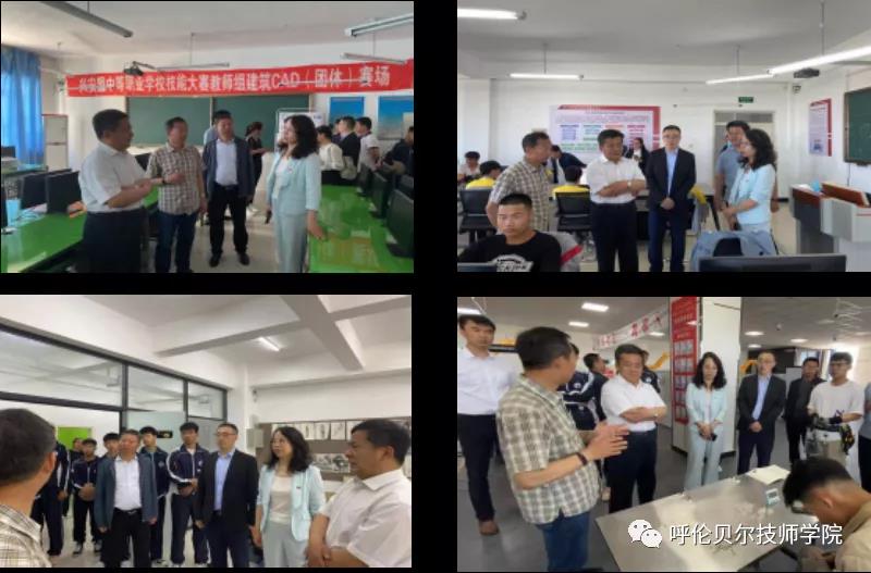 王曉龍院長(cháng)、楊嶺副院長(cháng)在巡視各賽場(chǎng)后帶領(lǐng)部分教師來(lái)到興安盟職業(yè)技術(shù)學(xué)院進(jìn)行參觀(guān)交流