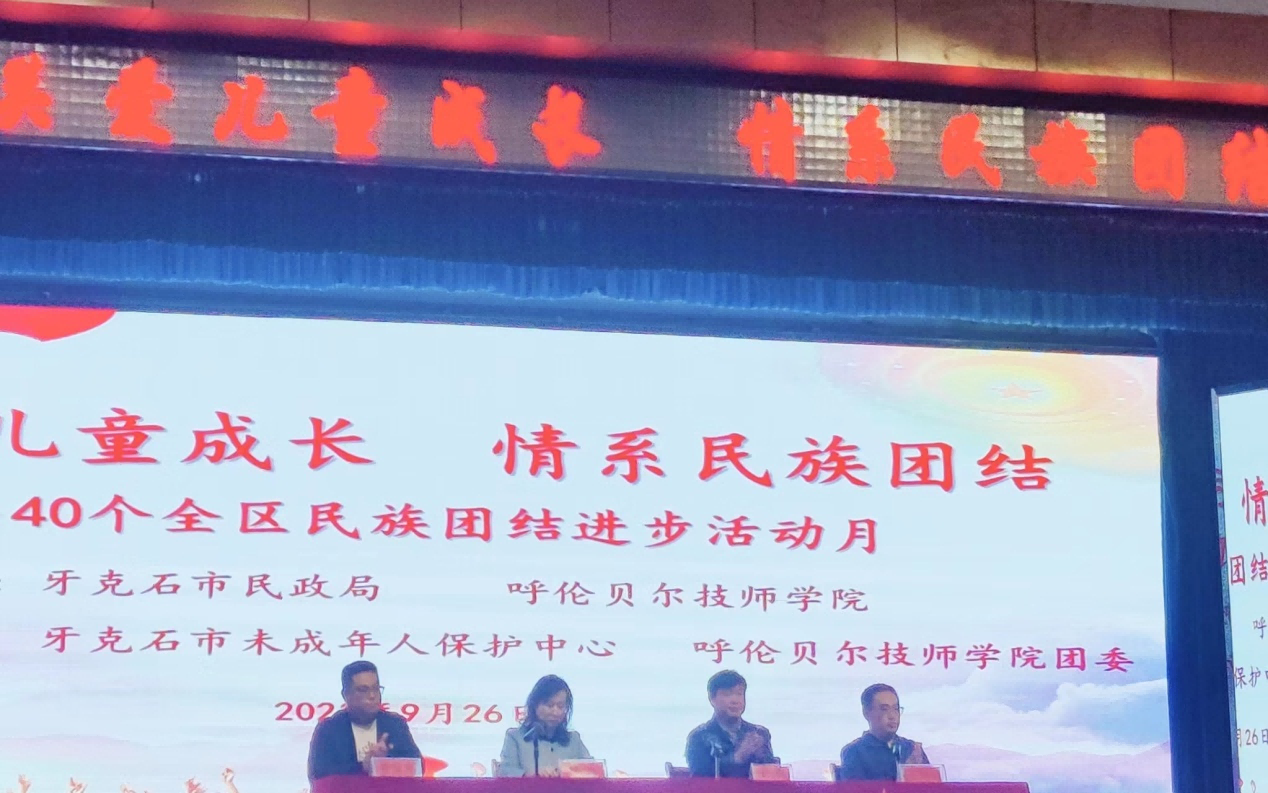 呼倫貝爾技師學(xué)院副院長(cháng)林杰強調了民族團結進(jìn)步教育及鑄牢中華民族共同體意識的重要性,并對牙克石市民政局的捐助表示衷心感謝,向同學(xué)們致以誠摯祝福和美好祝愿。林杰副院長(cháng)勉勵同學(xué)們要傳承弘揚優(yōu)秀傳統文化,構筑中華民族共有精神家園,攜手共進(jìn),走好民族團結“同心路”。